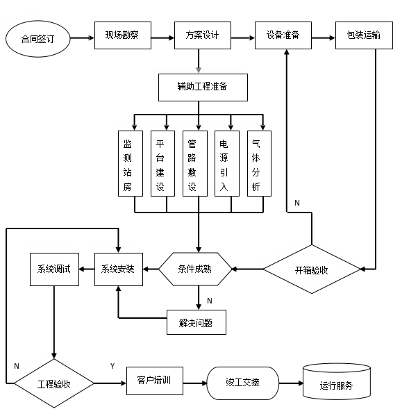 分析屋:系統(tǒng)部件環(huán)境溫度:5~40℃;系統(tǒng)部件環(huán)境溫度:-20~50℃;濕度:≤90%;建議在脫硫塔平臺部位設(shè)置分析小屋或者安裝在原來的分析儀設(shè)備間,原則為在保證滿足設(shè)備條件要求,數(shù)據(jù)輸出準(zhǔn)確,設(shè)備正常運行的情況下,盡量使取樣管長度縮短,便于觀測和維護(hù)。