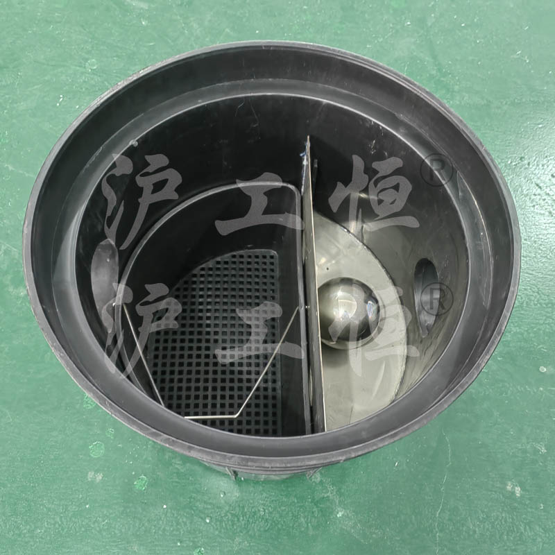 當(dāng)緩沖控制池中沒(méi)有水或水位較低時(shí),浮球因自身重力下沉,杠桿上與浮球連接的一端下垂,杠桿另一端頂起,給與杠桿連接的排水蓋提供向上的拉力,排水蓋開(kāi)啟,使污水能?**盼劭諗懦觶壞被撼蹇刂瞥嗇謁桓呤,浮窍|細(xì),顶弃嶋浮球连綋砟杠杆覛g,杠杆另覛g訟陸擔(dān)耘潘塹睦跣。潘鞘蘢隕碇亓ο侶,对排污空V邢蘗鰲?br />