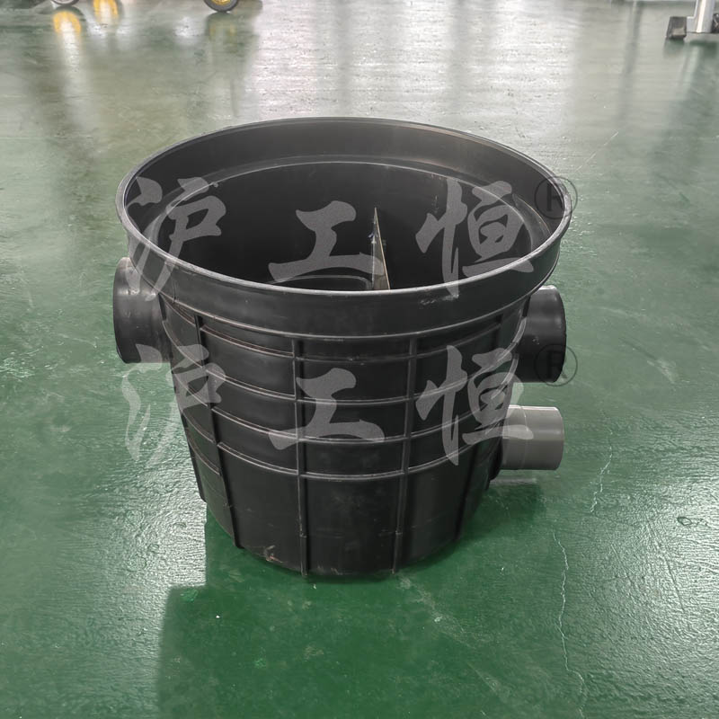 2、隔油井井口直徑通常為450mm,高度為500mm;進(jìn)、出水口為110mm管徑,落差10mm;內(nèi)置塑料提籃、油水隔離板、出水口過(guò)濾網(wǎng)。