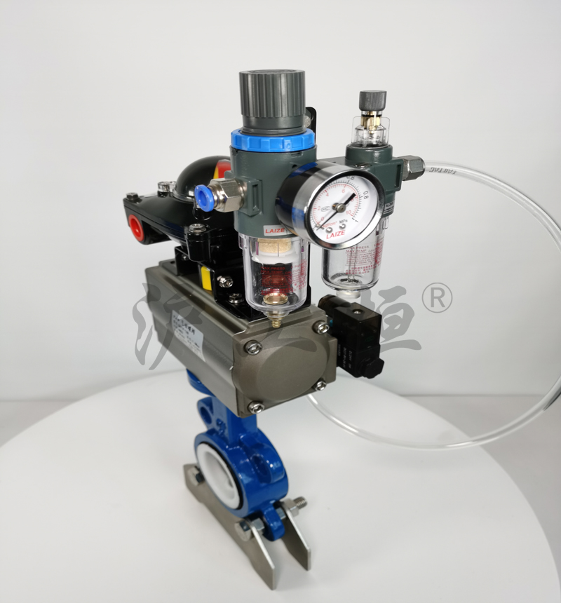 D671F-16Q鑄鐵襯四氟氣動對夾式蝶閥
