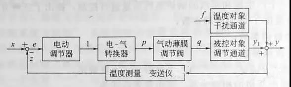 ①x是給定值、z是測(cè)量值(溫度)、e是偏差(e=x-z),f是干擾、y為被調(diào)參數(shù)(溫度)的真實(shí)值。