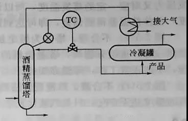 由所求得F=2來(lái)看,似乎應(yīng)該控制兩個(gè)參數(shù)才合理。但是由圖可知,冷凝罐上部通大氣,因此實(shí)際上已恒定了冷凝罐與蒸餾塔的壓力,客觀上塔壓已被控制,因此用塔頂溫度作為被調(diào)參數(shù)是合理的。