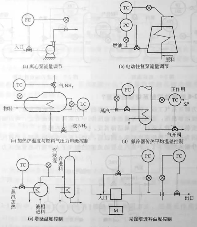 圖2-5(d)合理。根據(jù)被冷卻介質(zhì)(出口)溫度調(diào)節(jié)氨冷器氨氣側(cè)的蒸發(fā)壓力,而蒸發(fā)壓力又對(duì)應(yīng)一定的蒸發(fā)溫度,所以調(diào)節(jié)NH3排出量實(shí)際上調(diào)整了氨冷器內(nèi)氨蒸發(fā)側(cè)的溫度,使傳熱溫差得到調(diào)整,即可達(dá)到調(diào)節(jié)出口溫度的目的。