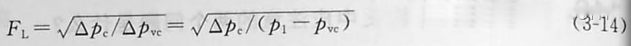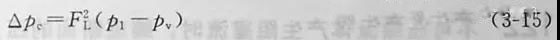 FL既可表示不同閥結構造成的壓力恢復,以修正不同閥結構造成的流量系數(shù)計算誤差,還要用于正常流動或阻塞流動的判別。因為FL定義公式(3-14)中的壓差△Pc就是該試驗閥產(chǎn)生阻塞流動的臨界壓差。這樣,當△P<△Pc時為正常流動,當△P≥△Pc時為阻塞流動。從式(3-14)中可解出液體介質(zhì)的△Pc為