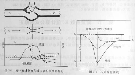 當流體流過調(diào)節(jié)閥時,其中壓力變化如圖3-4所示,可知在閥芯、閥座處由于節(jié)流作用而在附近的下游處產(chǎn)生一個縮流,其流體的流速大,但靜壓小。在遠離縮流處,隨著閥內(nèi)的流通面積的增大,流體的流速減小,由于相互摩擦,部分參量轉變成內(nèi)能,大部分靜壓被恢復,形成了閥門壓差。換言之,流體在節(jié)流處的壓力急劇下降,并在其后的節(jié)流通道中逐漸恢復,但已經(jīng)不能恢復到原來的P1值。這便是壓力恢復現(xiàn)象。
