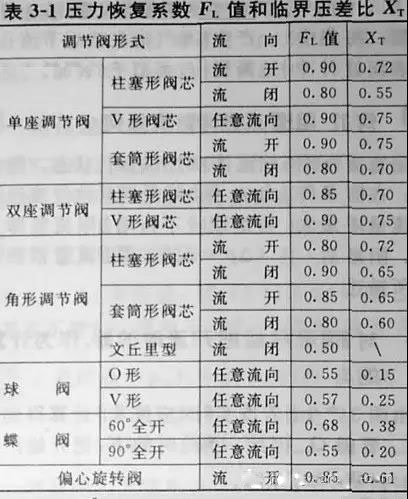 知FL是在閥門產(chǎn)生閃蒸時閥前后壓差△Pc與縮流處壓差△Pvc之比。用透明閥體做試驗將會發(fā)現(xiàn),當節(jié)流處產(chǎn)生閃蒸,即在節(jié)流處產(chǎn)生氣泡群時,Q就基本上不隨著△P的增加而增加。這個試驗說明:產(chǎn)生閃蒸的臨界壓差就是產(chǎn)生阻塞流的臨界壓差,測定此時的閥前后壓差△Pc和縮流處壓差△Pvc,便可求得壓力恢復系數(shù)FL,F(xiàn)L值的大小取決于調(diào)節(jié)閥的結構形狀。由試驗確定的各類閥的FL值見表3-1