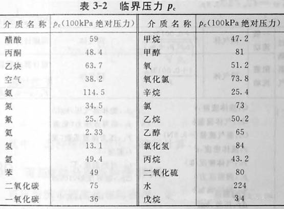 (3-18)式中Pc——液體勢力學(xué)臨界點(diǎn)壓力,見表3-2;