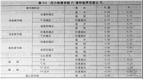 XT的數(shù)值只決定于閥的流路情況及結(jié)構(gòu),一般可用表格查出來(lái)(表3-1)