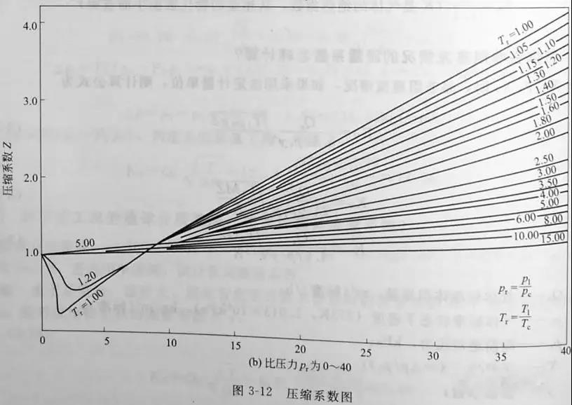 壓縮系數(shù)Z是比壓力Pr和比溫度Tr的函數(shù),可查圖3-12