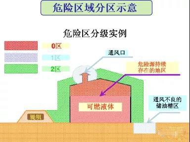 爆炸性混合物出現(xiàn)的或預(yù)期可能出現(xiàn)的數(shù)量達到足以要求對電氣設(shè)備的結(jié)構(gòu)、安裝和使用采取預(yù)防措施的區(qū)域,為爆炸危險區(qū)域。