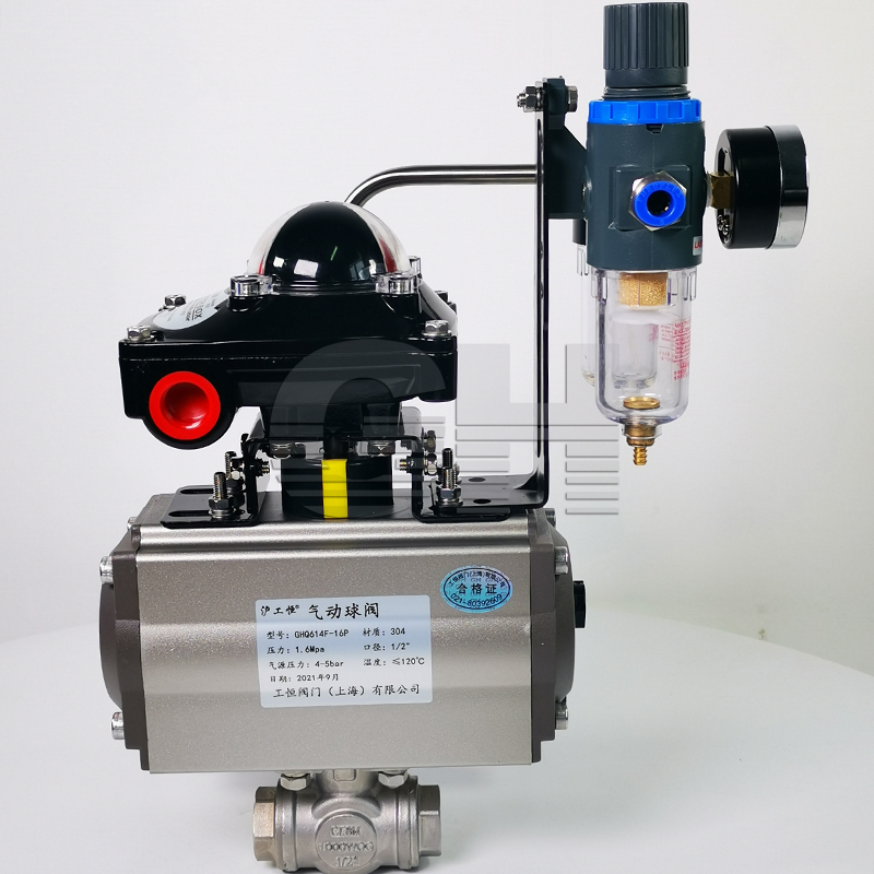 氣動三通絲扣球閥 Q614F 氣動三通內螺紋球閥 不銹鋼高壓絲扣球閥