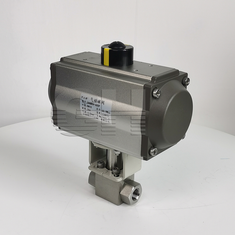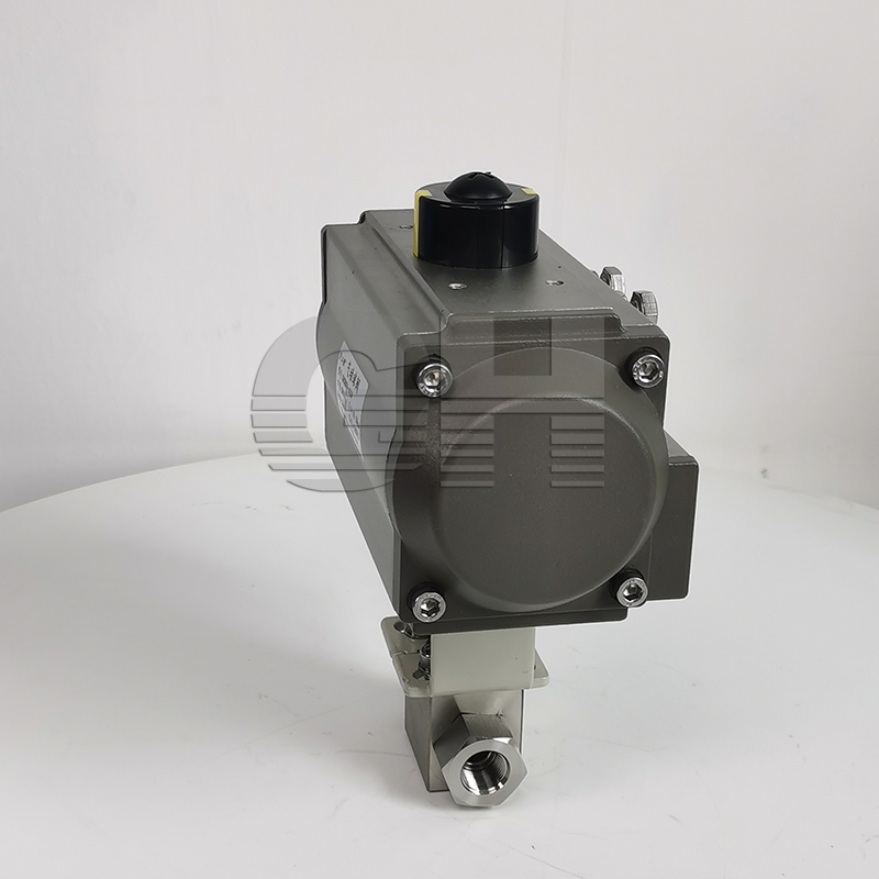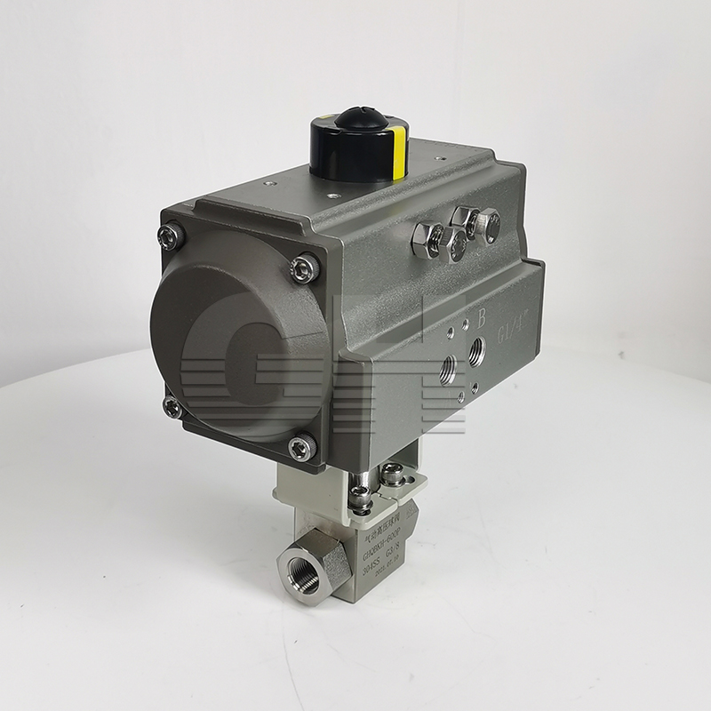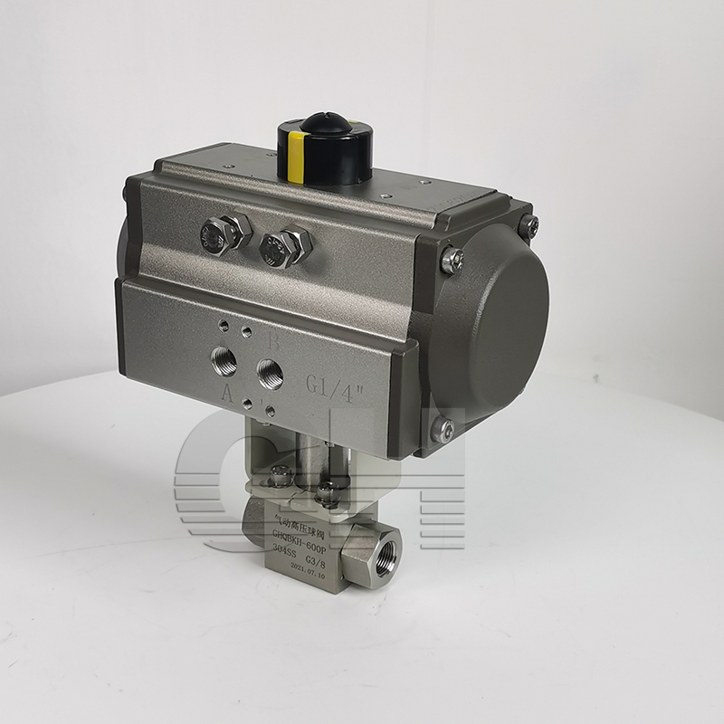 氣動高壓球閥采用氣動執(zhí)行器來驅(qū)動BKH系列高壓球閥實(shí)現(xiàn)開關(guān)位置的轉(zhuǎn)換,達(dá)到自動控制的目的。氣動執(zhí)行器分為雙作用和單作用(彈簧復(fù)位)兩種,雙作用執(zhí)行器輸出扭矩較大,高壓球閥一般選用雙作用執(zhí)行器。
