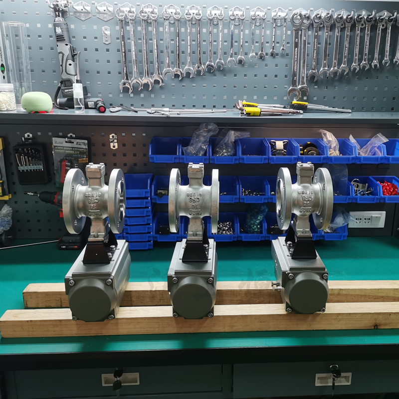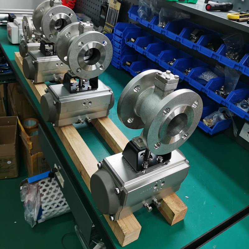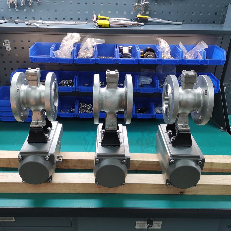 氣動V型球閥,球芯呈V形狀,可實現(xiàn)線性調(diào)節(jié),可調(diào)范圍大。當(dāng)閥門關(guān)閉時,V型缺口與閥座 之間產(chǎn)楔形剪切作用,既具有自潔功能又能防止球芯卡死,特別適用于管線結(jié)垢凍結(jié)場合。適宜于控制紙漿、污水,含有纖維和顆粒固體懸浮介質(zhì)及粉粒狀介質(zhì)。配用的ZGH 系列氣缸活塞式執(zhí)行機構(gòu),結(jié)構(gòu)簡單,輸出力矩大。本系列球閥按密封性能分為軟密封和硬密封;按調(diào)節(jié)方式分為調(diào)節(jié)型和切斷型,切斷型按作用形式分單作用和雙作用式,調(diào)節(jié)型為雙作用式。單作用式的獨特***點是一旦動力源發(fā)生故障,球閥將按控制系統(tǒng)的要求自動處于關(guān)閉或開啟位置。 產(chǎn)品廣泛應(yīng)用于電力、石油、化工、造紙、輕紡、食品、制藥等領(lǐng)域。