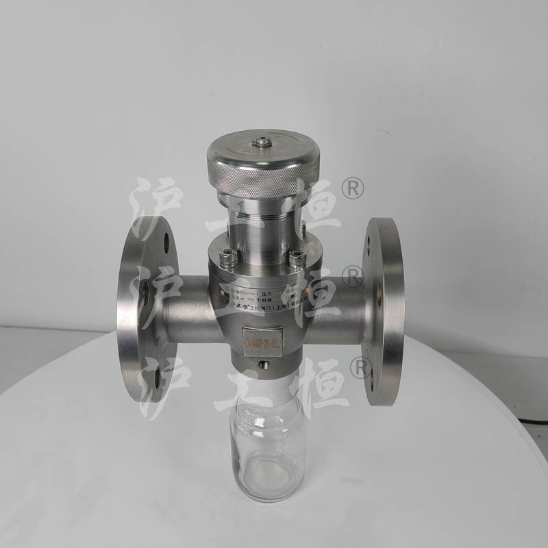 GHZSQYF46襯氟取樣閥解決了現(xiàn)有取樣閥的復(fù)雜結(jié)構(gòu),保溫帶吹掃口取樣閥主要有閥體、保溫殼、閥芯、閥桿、閥座、取樣瓶組成,取樣瓶為可拆卸設(shè)計(jì),試樣進(jìn)入取樣瓶?jī)?nèi),可將取樣瓶密封,避免污染試樣,流道無(wú)流阻設(shè)計(jì),不影響流量,閥體保溫可接入蒸汽或?qū)嵊捅兀杀苊饨橘|(zhì)因低溫凝固,閥桿通過(guò)手輪、電動(dòng)執(zhí)行機(jī)構(gòu)、氣動(dòng)執(zhí)行機(jī)構(gòu)旋轉(zhuǎn)帶動(dòng)閥桿及閥芯,閥芯上下提拉,可精確控制流量,實(shí)現(xiàn)試樣進(jìn)入取樣瓶?jī)?nèi),取樣瓶可選透明和避光兩種,本取樣閥廣泛應(yīng)用在制藥、化工、食品行業(yè)。