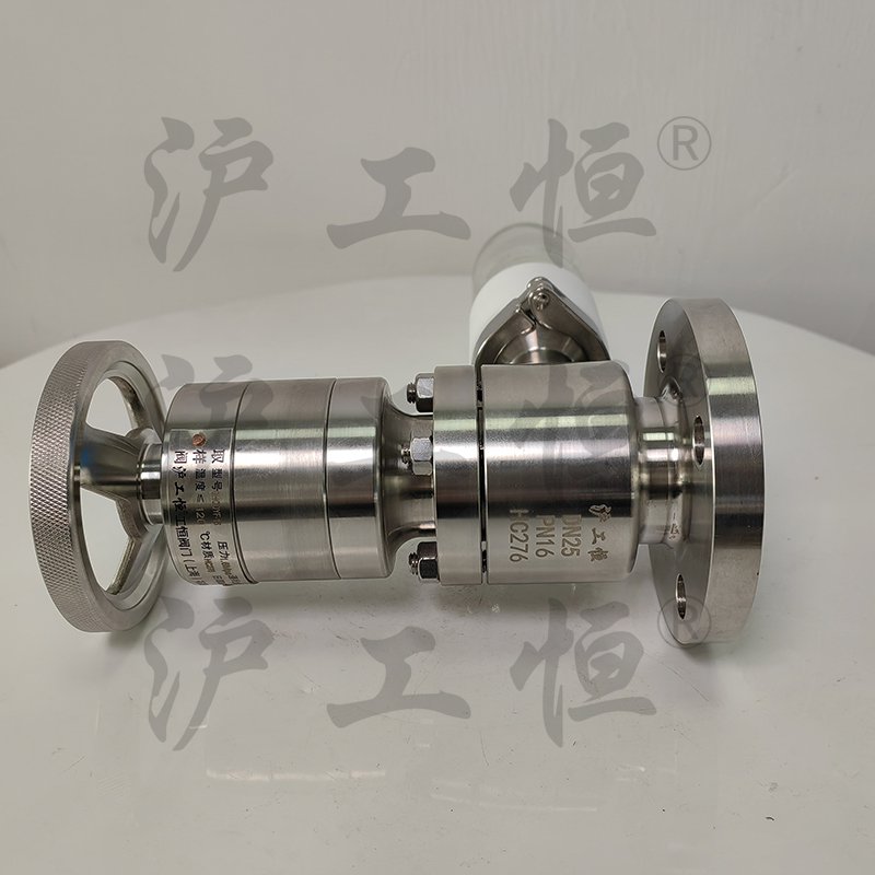 GHDJKQYF-16哈氏合金HC276取樣閥-罐底取樣閥,主要用于高腐蝕介質的取樣,一般用于罐底取樣,GHDJKQYF-16哈氏合金HC276取樣閥-罐底取樣閥主要有閥體、閥芯、閥桿、閥座、,取樣瓶組成,取樣瓶為可拆卸設計,試樣進入取樣瓶內,配套的瓶蓋可將取樣瓶密封,避免污染試樣,取樣閥流道無滯留、無流阻設計,不影響流量,閥桿通過手輪旋轉帶動閥桿及閥芯,閥芯上下提拉,可精確控制流量,精確控制取樣量,使試樣進入取樣瓶內,取樣瓶可選透明和避光兩種,本取樣閥廣泛應用在制藥、化工、食品行業(yè)。