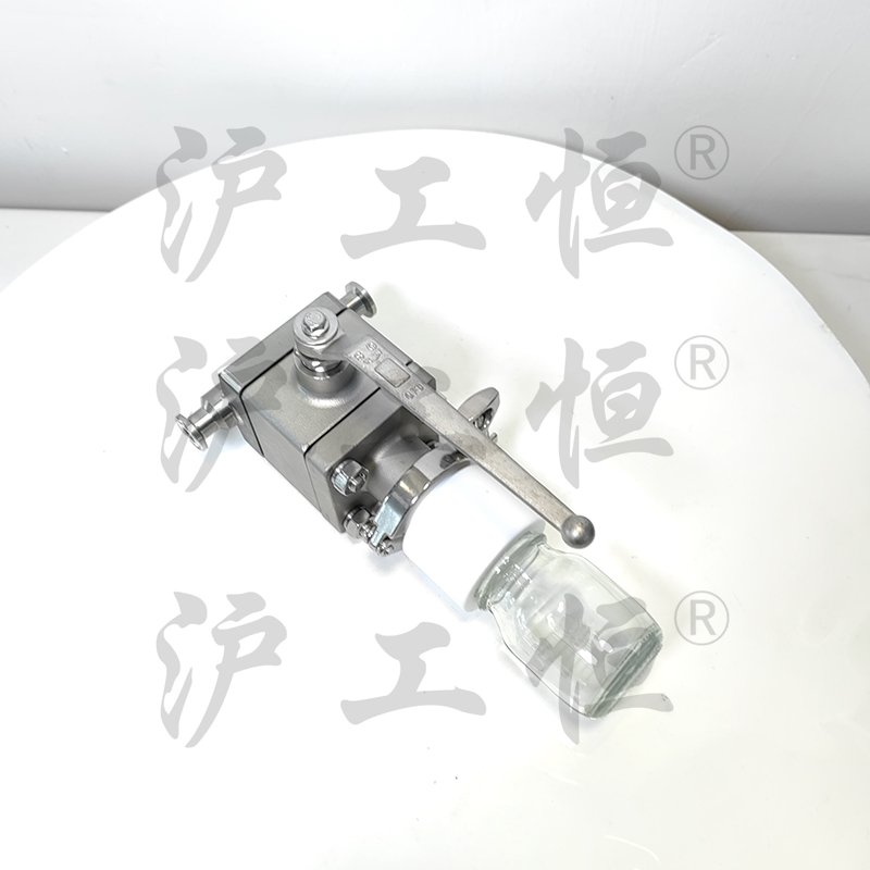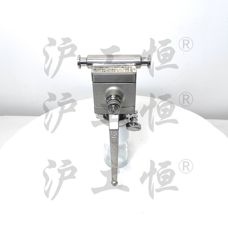 在線取樣閥解決了現(xiàn)有取樣閥的復(fù)雜結(jié)構(gòu),在線取樣閥主要有閥體、閥芯、閥桿、閥座、取樣瓶組成,取樣瓶為可拆卸設(shè)計(jì),試樣進(jìn)入取樣瓶?jī)?nèi),可將取樣瓶密封,避免污染試樣,流道無流阻設(shè)計(jì),不影響流量,閥桿通過手柄、電動(dòng)執(zhí)行機(jī)構(gòu)、氣動(dòng)執(zhí)行機(jī)構(gòu)旋轉(zhuǎn)帶動(dòng)閥桿及閥芯使試樣進(jìn)入閥芯內(nèi),通過旋轉(zhuǎn)閥芯180°實(shí)現(xiàn)試樣進(jìn)入取樣瓶?jī)?nèi),放樣的同時(shí),閥芯將取樣口關(guān)閉,從而做到零泄漏及無壓取樣,不會(huì)因開關(guān)閥門對(duì)取樣瓶造成壓力沖擊,從而保證操作者的安全。取樣瓶可選透明和避光兩種,本取樣閥廣泛應(yīng)用在制藥、化工、食品行業(yè)。
