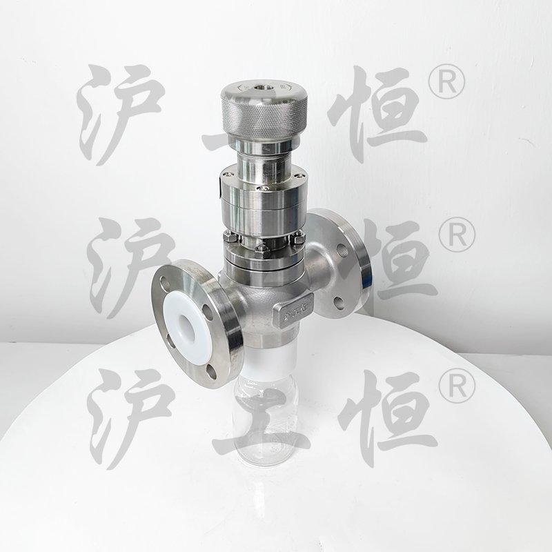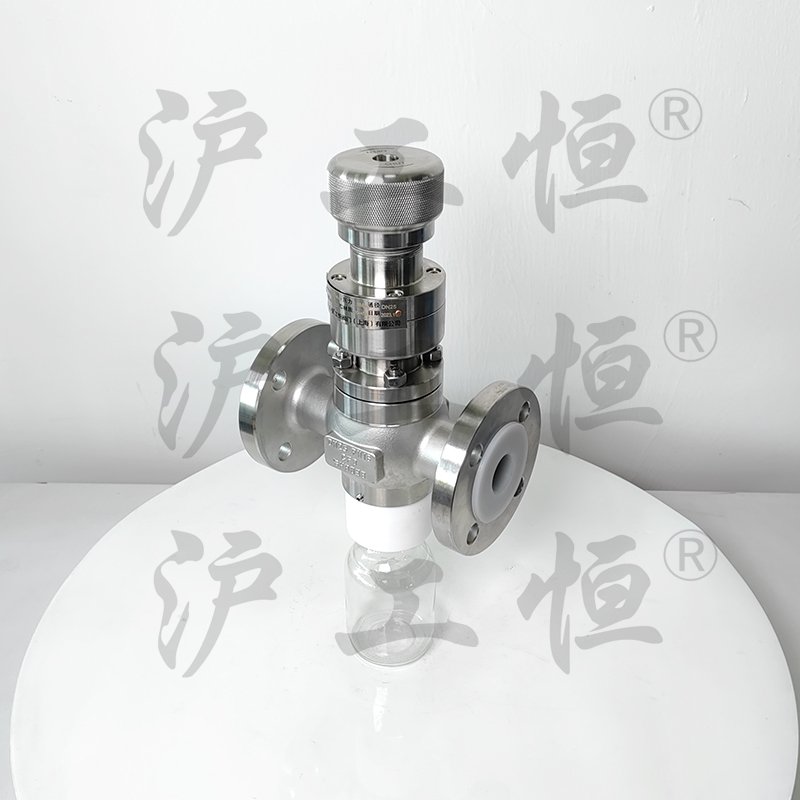 GHZSQYF46-16P不銹鋼襯氟取樣閥,GHZSQYF46-16P不銹鋼襯氟取樣閥與介質(zhì)接觸部份全襯氟,可用在腐蝕工況上,內(nèi)襯材質(zhì)有F40、F46、PTFE、PFA,高溫工況可采用內(nèi)襯PFA,GHZSQYF46-16P不銹鋼襯氟取樣閥主要有襯氟閥體、襯氟閥芯、襯氟閥蓋、襯氟閥桿、襯氟閥座、取樣瓶組成,取樣瓶為可拆卸設(shè)計(jì),試樣進(jìn)入取樣瓶?jī)?nèi),配套的瓶蓋可將取樣瓶密封,避免污染試樣,取樣閥流道無(wú)滯留、無(wú)流阻設(shè)計(jì),不影響流量,閥桿通過(guò)手輪旋轉(zhuǎn)帶動(dòng)閥桿及閥芯,閥芯上下提拉,可精確控制流量,精確控制取樣量,使試樣進(jìn)入取樣瓶?jī)?nèi),取樣瓶可選透明和避光兩種,本取樣閥廣泛應(yīng)用在制藥、化工、食品行業(yè)。