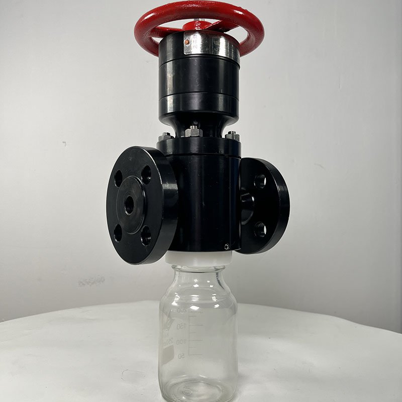 2、法蘭夾片閥法蘭夾片閥的原理是,通過(guò)閥桿頂部的椎體和閥座的錐孔進(jìn)行密封,在取樣時(shí)使用手輪提升閥桿的位置,將閥桿與錐孔分離,這樣錐孔中的介質(zhì)即可流入外部的取樣器皿中。