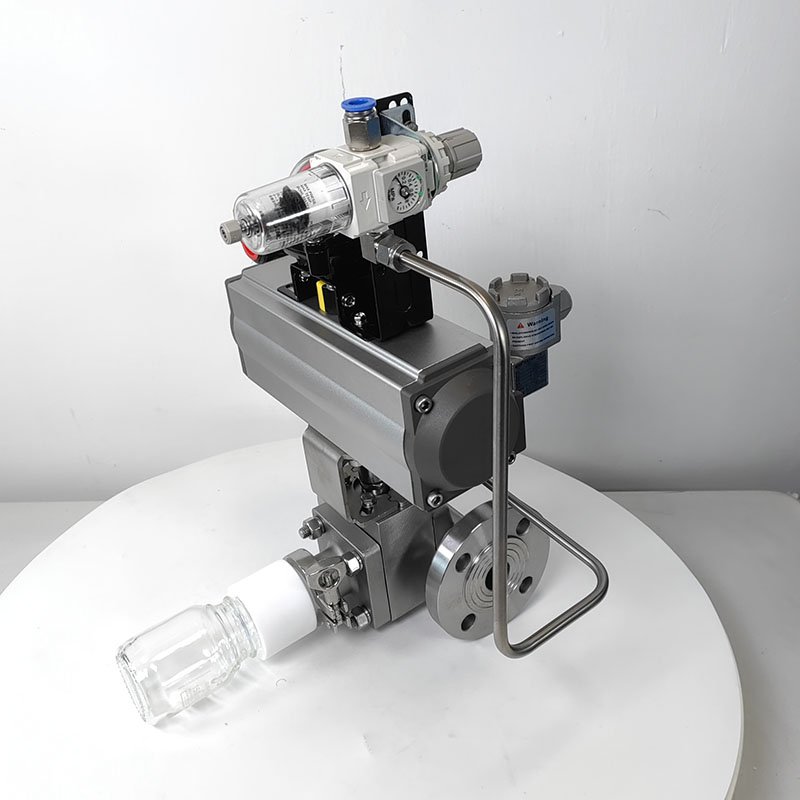 GHQZXQYF46-16RL氣動襯氟定量取樣閥采用全襯氟設計,可以在腐蝕性工況的取樣,解決特材造價高的問題,GHQZXQYF46-16RL氣動襯氟定量取樣閥主要有襯氟閥體、襯氟閥芯、襯氟閥桿、閥座、氣動執(zhí)行機構、取樣瓶組成,取樣瓶為可拆卸設計,試樣進入取樣瓶內,可將取樣瓶密封,避免污染試樣,流道無流阻設計,不影響流量,閥桿通過手柄、電動執(zhí)行機構、氣動執(zhí)行機構旋轉帶動閥桿及閥芯使試樣進入閥芯內,通過旋轉閥芯180°實現(xiàn)試樣進入取樣瓶內,放樣的同時,閥芯將取樣口關閉,從而做到零泄漏及無壓取樣,不會因開關閥門對取樣瓶造成壓力沖擊,從而保證操作者的安全。取樣瓶可選透明和避光兩種,本取樣閥廣泛應用在制藥、化工、食品行業(yè)。