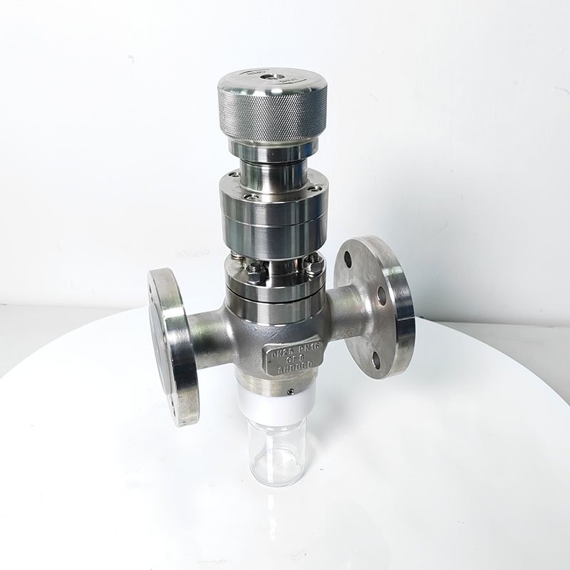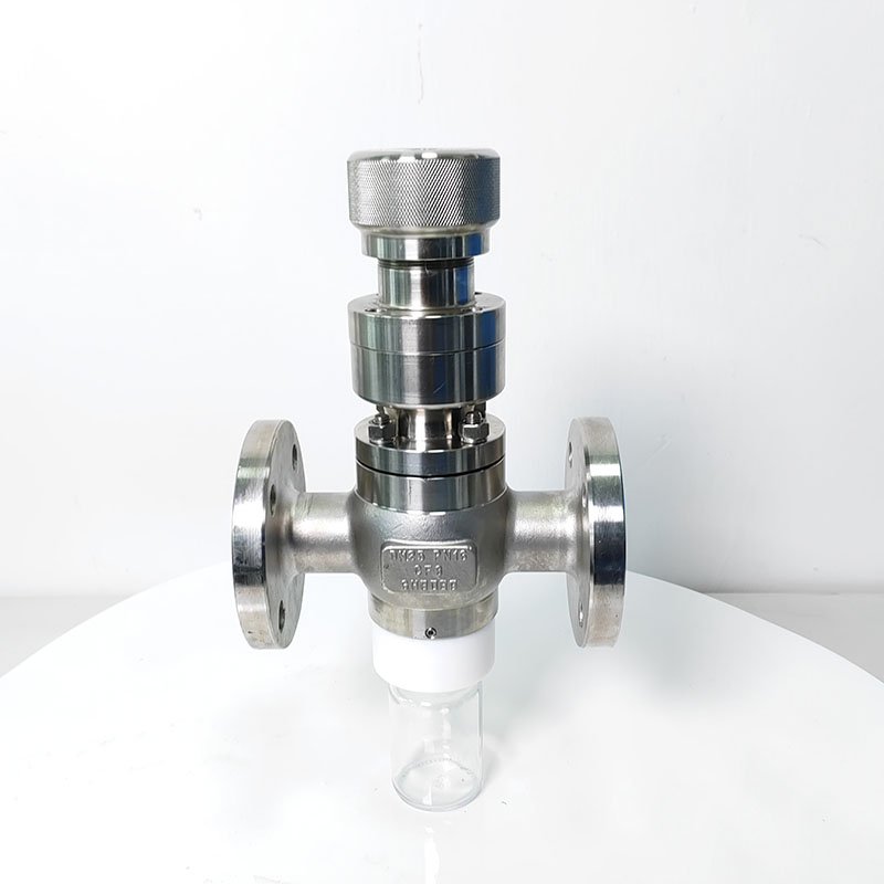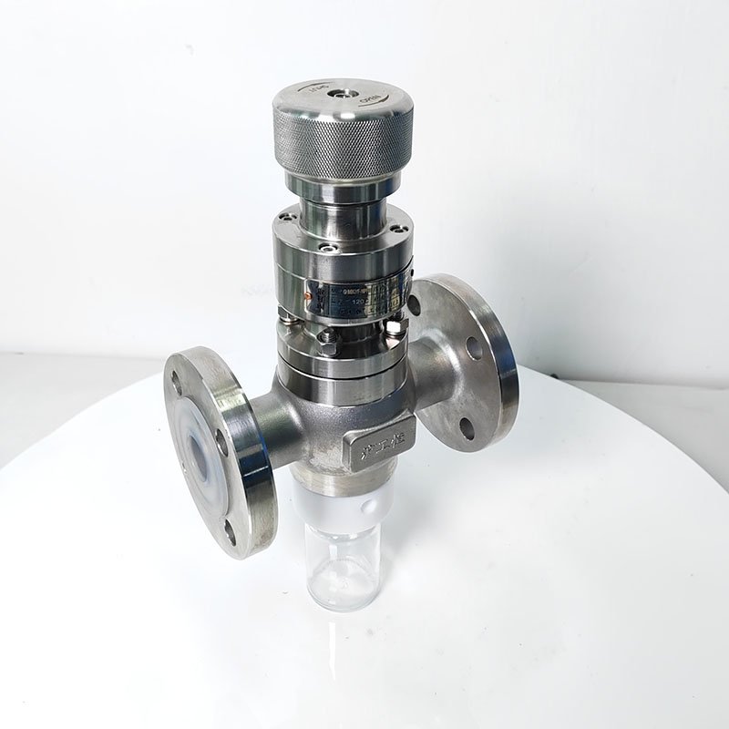 GHZSQYFPFA-16P 手動襯PFA取樣閥,耐腐蝕取樣閥采用全襯氟設(shè)計,可以在腐蝕性工況的取樣,解決特材造價高的問題,GHZSQYFPFA-16P 手動襯PFA取樣閥,耐腐蝕取樣閥主要有耐腐蝕體、襯氟閥芯、襯氟閥桿、閥座、氣動執(zhí)行機構(gòu)、取樣瓶組成,取樣瓶為可拆卸設(shè)計,試樣進入取樣瓶內(nèi),可將取樣瓶密封,避免污染試樣,流道無流阻設(shè)計,不影響流量,閥桿通過手柄、電動執(zhí)行機構(gòu)、氣動執(zhí)行機構(gòu)旋轉(zhuǎn)帶動閥桿及閥芯使試樣進入閥芯內(nèi),通過旋轉(zhuǎn)閥芯180°實現(xiàn)試樣進入取樣瓶內(nèi),放樣的同時,閥芯將取樣口關(guān)閉,從而做到零泄漏及無壓取樣,不會因開關(guān)閥門對取樣瓶造成壓力沖擊,從而保證操作者的安全。取樣瓶可選透明和避光兩種,本取樣閥廣泛應(yīng)用在制藥、化工、食品行業(yè)。