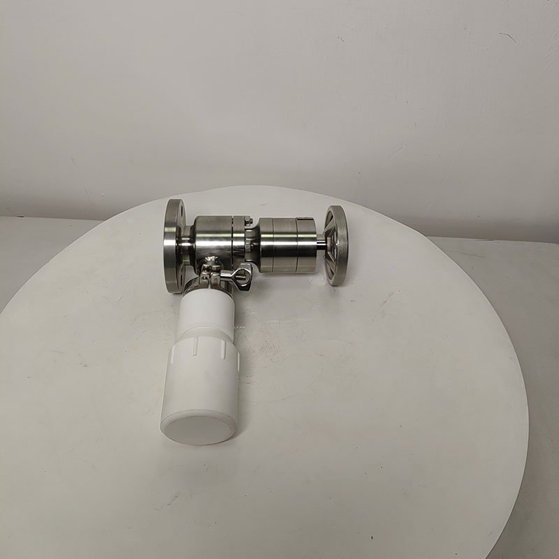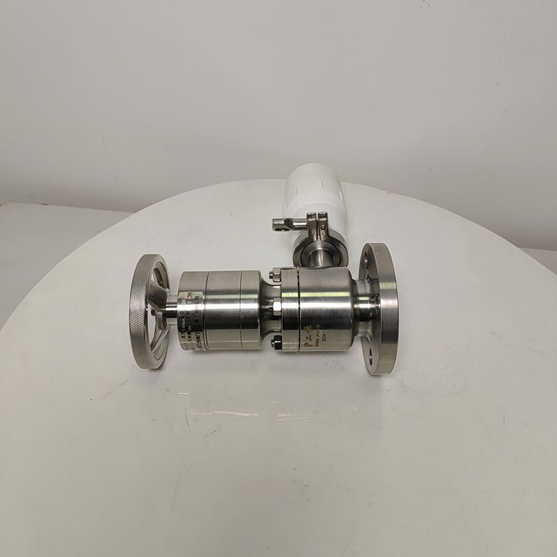 單進口側裝取樣閥采用全襯氟設計,可以在腐蝕性工況的取樣,解決特材造價高的問題,單進口側裝取樣閥主要有襯氟閥體、襯氟閥芯、襯氟閥桿、閥座、氣動執(zhí)行機構、取樣瓶組成,取樣瓶為可拆卸設計,試樣進入取樣瓶內,可將取樣瓶密封,避免污染試樣,流道無流阻設計,不影響流量,閥桿通過手柄、電動執(zhí)行機構、氣動執(zhí)行機構旋轉帶動閥桿及閥芯使試樣進入閥芯內,通過旋轉閥芯180°實現(xiàn)試樣進入取樣瓶內,放樣的同時,閥芯將取樣口關閉,從而做到零泄漏及無壓取樣,不會因開關閥門對取樣瓶造成壓力沖擊,從而保證操作者的安全。取樣瓶可選透明和避光兩種,本取樣閥廣泛應用在制藥、化工、食品行業(yè)。