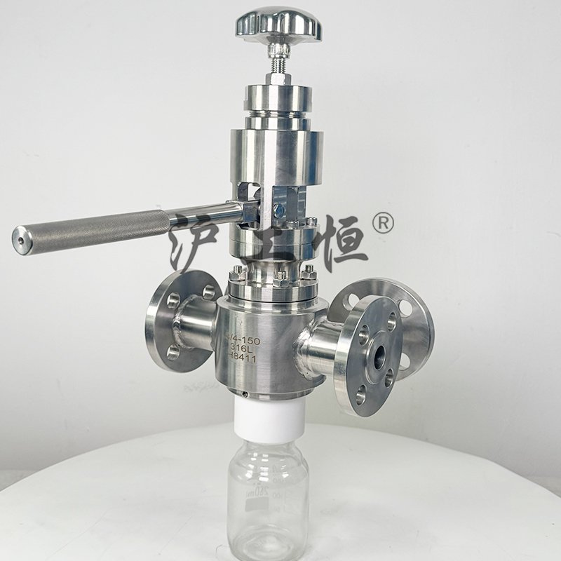 不銹鋼鋼壓桿式取樣閥用于管線壓桿式取樣,取樣介質真實, GHZXQYF-300LB美標高溫壓桿式取樣主要有閥體、閥芯、閥桿、閥座、高溫填料、排氣口,取樣瓶組成,取樣瓶為可拆卸設計,試樣進入取樣瓶內(nèi),配套的瓶蓋可將取樣瓶密封,避免污染試樣,取樣閥流道無滯留、無流阻設計,不影響流量,閥桿通過手輪旋轉帶動閥桿及閥芯,閥芯上下提拉,可精確控制流量,精確控制取樣量,使試樣進入取樣瓶內(nèi),取樣瓶可選透明和避光兩種,本取樣閥廣泛應用在制藥、化工、食品行業(yè)。