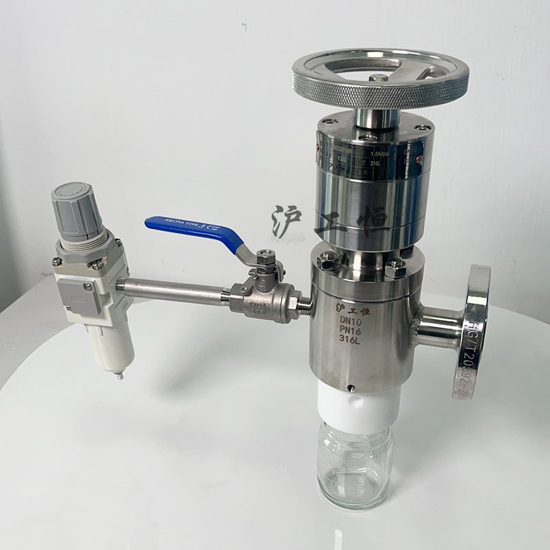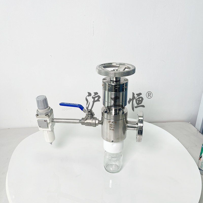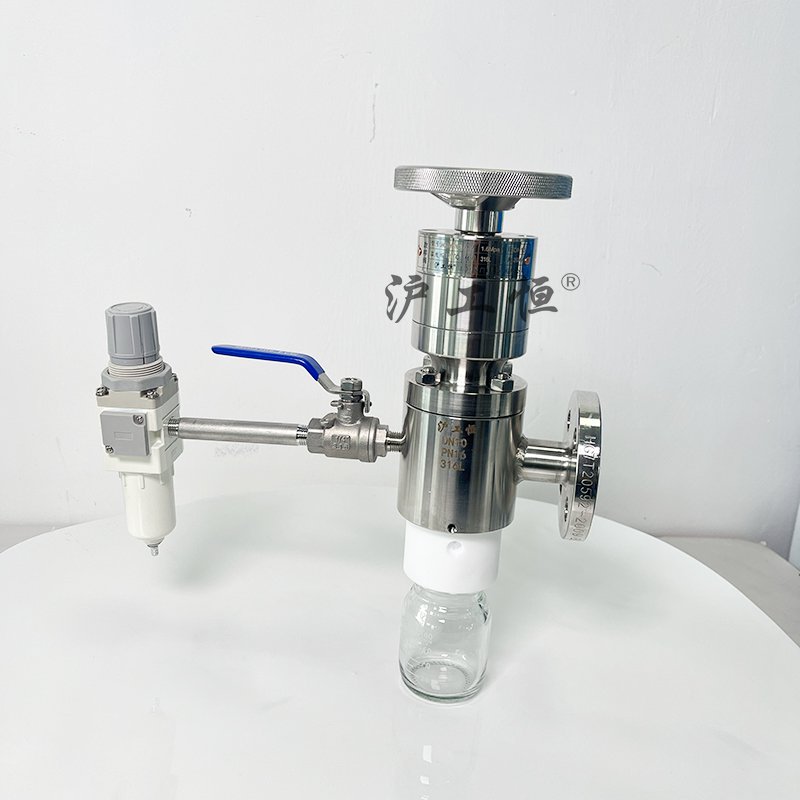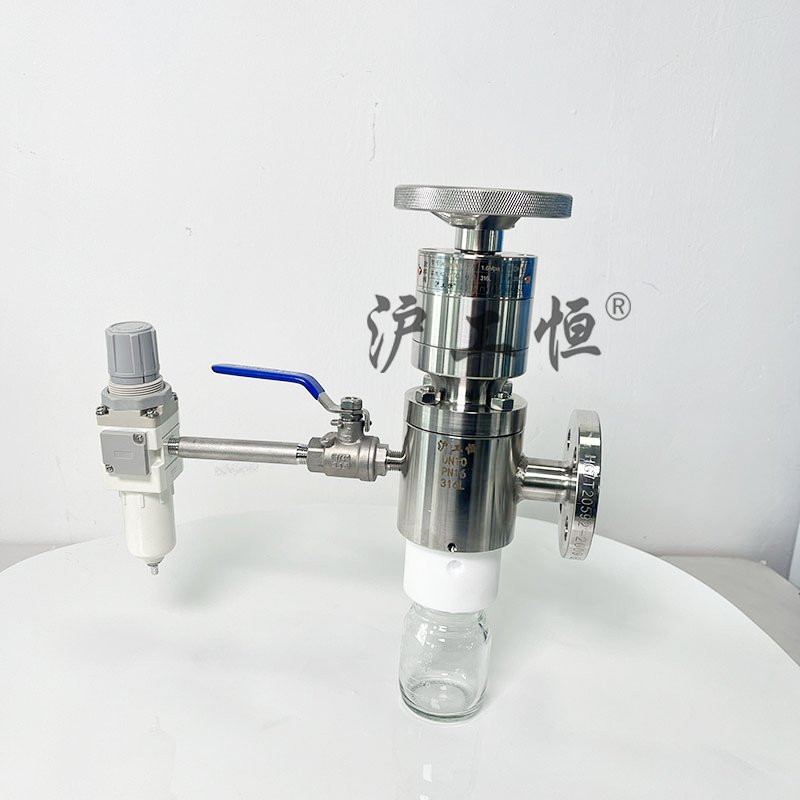 罐底取樣閥-帶反吹掃-配PFA取樣瓶,解決了現(xiàn)有取樣閥的復(fù)雜結(jié)構(gòu),取樣瓶采用PFA材質(zhì),可取樣為腐蝕性介質(zhì),罐底取樣閥-帶反吹掃配PFA取樣瓶主要有閥體、閥芯、閥桿、閥座、密閉針、帶膜片取樣瓶組成,取樣瓶為可拆卸設(shè)計,試樣從入料針進(jìn)入取樣瓶內(nèi),并通過排氣針排出壓力,使取樣瓶保持在常壓狀態(tài),取樣瓶品裝有橡膠膜可將取樣瓶密封,避免污染試樣,流道無流阻設(shè)計,不影響流量,閥桿通過手柄、電動執(zhí)行機(jī)構(gòu)、氣動執(zhí)行機(jī)構(gòu)旋轉(zhuǎn)帶動閥桿及閥芯,閥芯上下提拉,可精確控制流量,實現(xiàn)試樣進(jìn)入取樣瓶內(nèi),取樣瓶可選透明和避光兩種,本取樣閥廣泛應(yīng)用在制藥、化工、食品行業(yè)。
