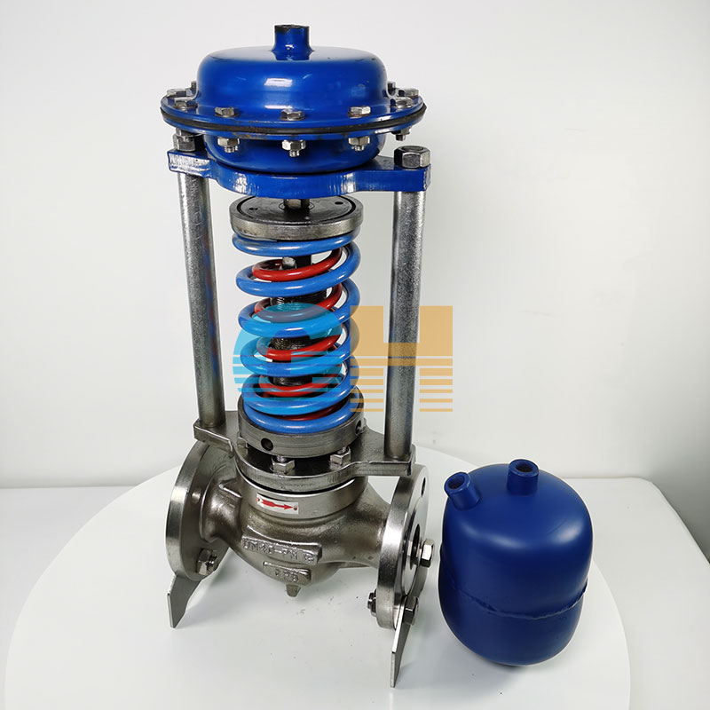如閥后壓力增加,作用于膜片上的力增加,壓縮彈簧,帶動(dòng)閥芯,使閥門(mén)開(kāi)度減少,直至閥后壓力下降至設(shè)定值為止。同理,如閥后壓力降低,作用在膜片上的力減小,由于彈簧的反作用力,帶動(dòng)閥芯,使閥門(mén)的開(kāi)度加大,直至閥后壓力上升至設(shè)定值為止。