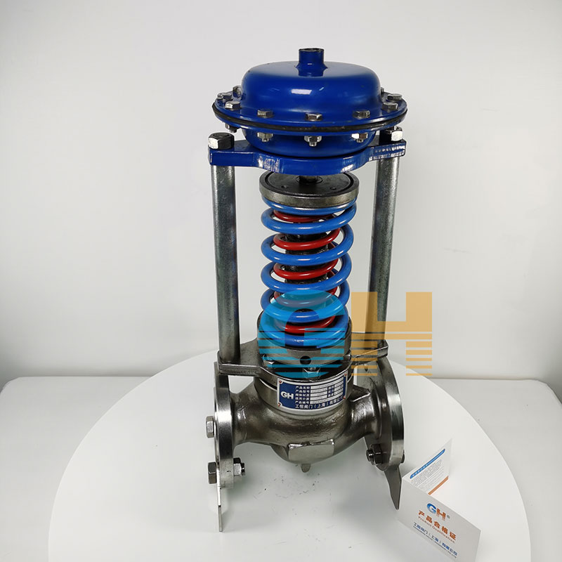 如閥前壓力增加,作用于膜片上的力增加,壓縮彈簧,帶動(dòng)閥芯,使閥門(mén)開(kāi)度增大,直至閥前壓力下降至設(shè)定值為止。同理,如閥前壓力降低,作用在膜片上的力減小,由于彈簧的反作用力,帶動(dòng)閥芯,使閥門(mén)的開(kāi)度加小,直至閥前壓力上升至設(shè)定值為止。若閥前壓力小于設(shè)定值則該閥一直是關(guān)閉的。
