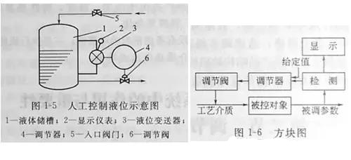 圖1-4所示是人工控制液位示意圖。液體連續(xù)不斷地通過入口閥門2流入儲槽1,同時又不斷地通過出口閥門4流出?梢钥闯,槽內(nèi)液位將隨著流入量或流出量而波動,波動嚴(yán)重時,槽內(nèi)流體可能溢出或抽空。要解決這個問題,使液位保持在某一范圍內(nèi),最簡單的辦法是安裝一個玻璃管液位計(jì)3。以液位計(jì)的上、下限刻度線為標(biāo)準(zhǔn),當(dāng)液位上升到接近上限刻度時,可以開大出品閥門的開度,或關(guān)小進(jìn)口閥門的開度;當(dāng)液位下降到接近下限刻度時,可以關(guān)小出口中閥門或開大進(jìn)口閥門的開度,這樣就避免了儲槽因液位過高而溢流,或因液位下降而抽空的事故發(fā)生,使液位保持在某一范圍內(nèi)。這個過程是由人直接控制的,所以叫人工控制。