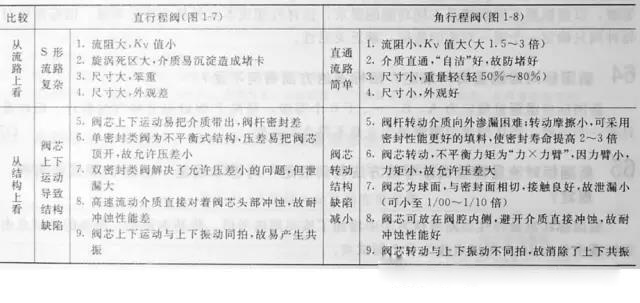 表1-2 直行程閥與角行程閥相比較存在的9個不足