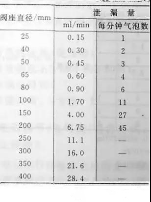 隨閥座直徑變化,大允許泄漏量(ml/min或每分種氣泡數(shù))列于表1-4.