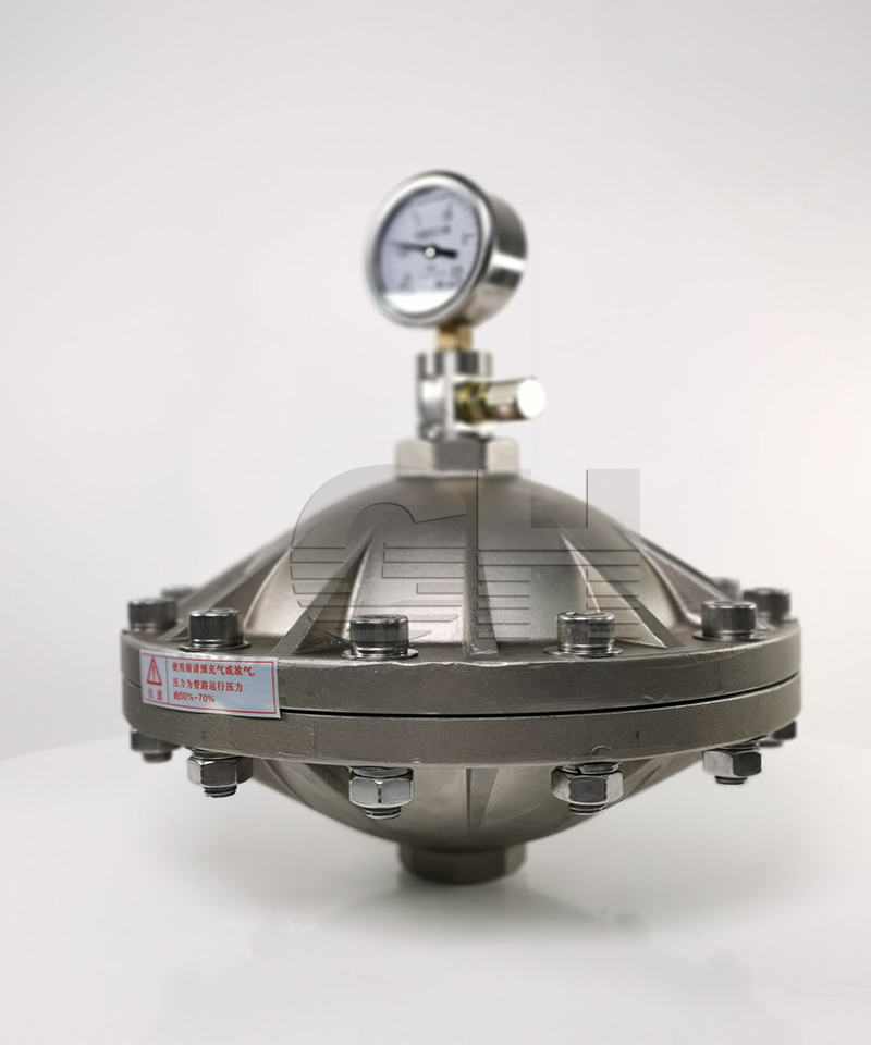 脈沖阻尼器又名脈動(dòng)阻尼器、脈動(dòng)緩沖器,是消除管路脈動(dòng)的常用元件,是計(jì)量泵必須配備的附件。龍猛脈動(dòng)阻尼器能夠平滑由柱塞泵、隔膜泵等容積泵引起的管路脈動(dòng)和系統(tǒng)的水錘現(xiàn)象。它由耐腐蝕的隔膜將氣體與管路中的液體隔離,通過(guò)氣室容積的變化平滑管路脈動(dòng)。