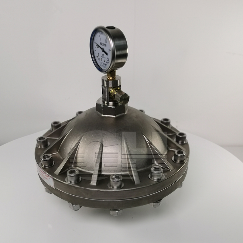 膜片式脈沖阻尼器分為上下殼體,中間由聚四氟乙烯&橡膠復(fù)合膜片分隔,是常用的脈沖阻尼器。 的***點(diǎn)就是隔膜將預(yù)充氣體和管路中的液體分開(kāi),方便維護(hù),在合適的選型、充壓條件下,能夠減少 大多數(shù)的脈沖。我公司生產(chǎn)的膜片式脈沖阻尼器PVC材質(zhì)的 耐壓為1.0MPa,不銹鋼材質(zhì) 耐壓一般為2.5MPa,耐壓5.0MPa。